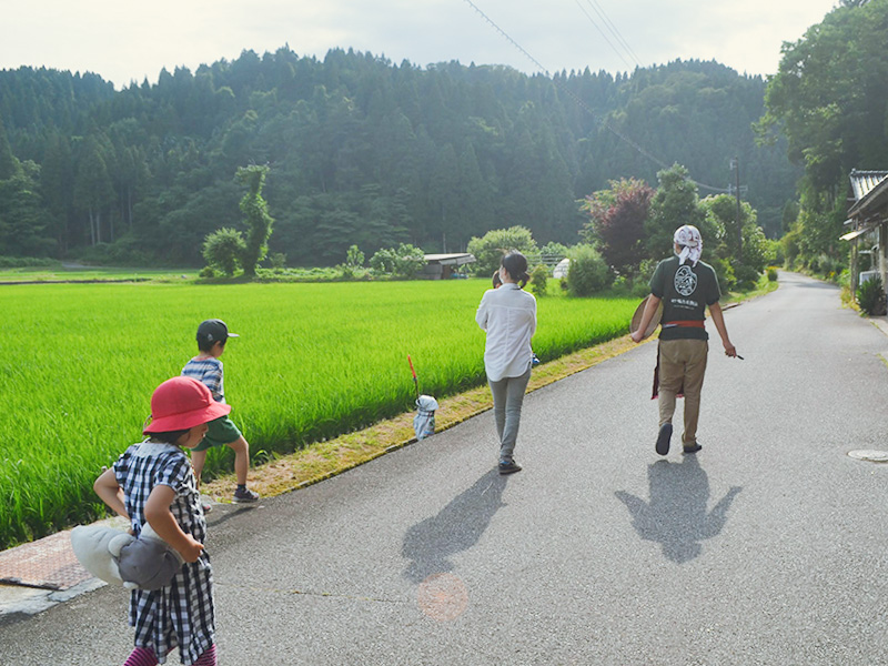 ガイドと一緒にお散歩。ゆるゆるてくてく、鳥の声、田んぼを吹く風を感じながら。
